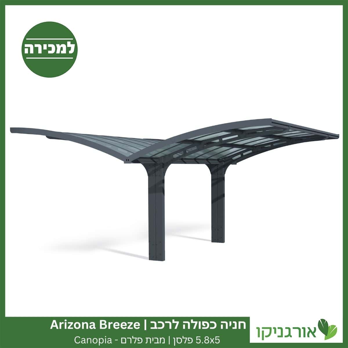 Arizona Breeze היא פתרון קירוי מודרני ואסתטי עבור הרכב שלך ומספקת לו הגנה לאורך שנים. בעלת עיצוב ייחודי וחסכוני בשטח המאפשר גישה לחניה בנוחות מירבית. כוללת שלד אלומיניום מסיבי, עמיד בפני חלודה וזיגוג פלסן, המספק הצללה נהדרת והגנה מלאה מפני קרינה אולטרה סגולה מזיקה. העיצוב החדשני, בשילוב חומרים עמידים ואיכותיים, שאינם דורשים תחזוקה שוטפת, הופכים את האריזונה לקירוי המושלם עבורכם..