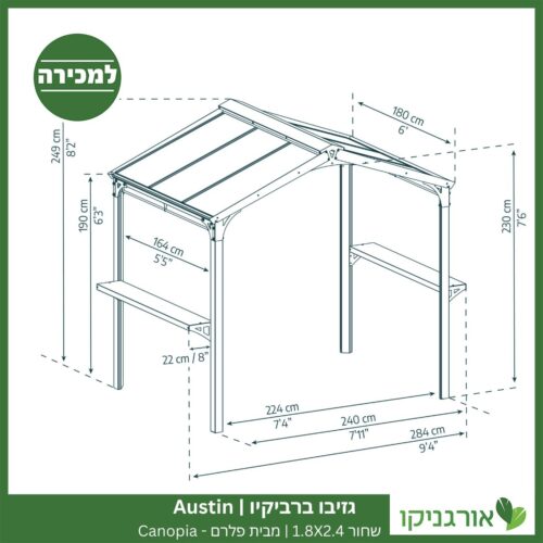 • מידות: רוחב 2.4 מ’ וגובה 2.5 מ’ לגישה נוחה.